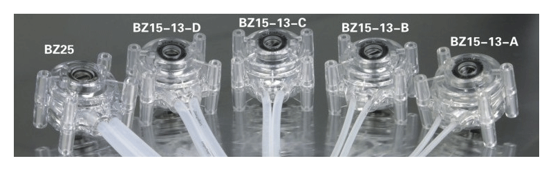 BZ系列標準型蠕動泵泵頭滾輪采用不銹鋼或PET-TX材料,外殼采用PC材料,晶瑩剔透,一目了然,透明的外殼易于觀察泵的運行。