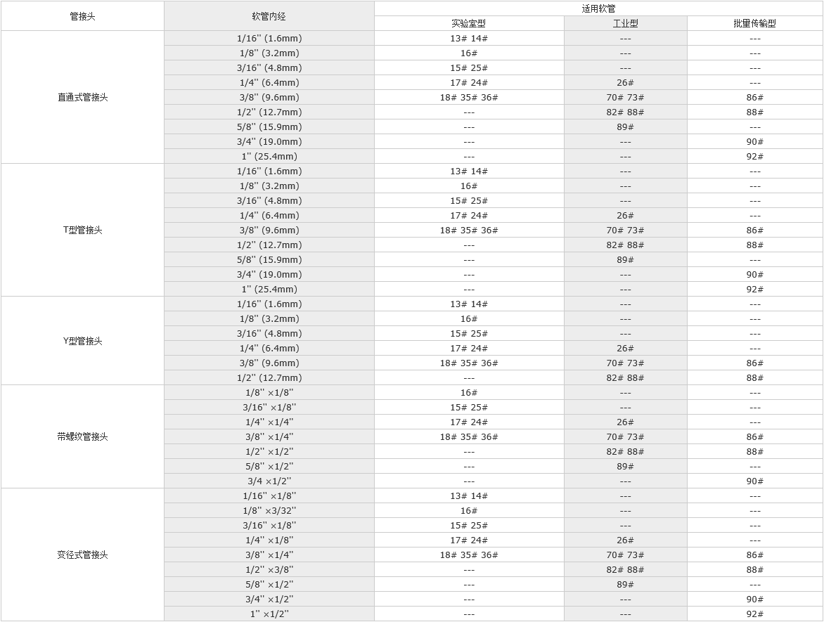 蘭格公司提供以下四種材料的蠕動(dòng)泵管接頭,可以完美的與軟管系統(tǒng)相連并保證液體流動(dòng)的通暢。