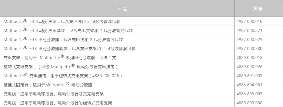 Multipette? E3/E3x 電動分液器結合分液管,提供從 1 μL——50 mL 的分液范圍,特別適合于高粘度、易揮發(fā)、易起泡、高密度及危險性等問題溶液的精準移取及分裝。中文彩色界面、RFID 數(shù)據(jù)讀寫、睡眠模式、8 檔速度調(diào)節(jié)等功能提升您的使用體驗。