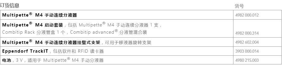 訂貨號:4982000314 Multipette? M4 手動(dòng)連續(xù)分液器結(jié)合9種不同規(guī)格 Combitips advanced? 分液管,提供從 1 μL——10 mL 的分液范圍,一次吸液可完成最高 100 次分液。特別適合于高粘度、易起泡、易揮發(fā)、危險(xiǎn)性等問題液體的移取及分裝。