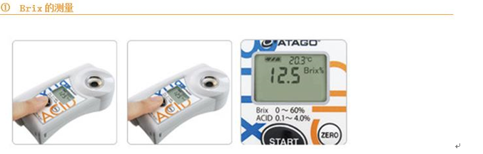為了方便更多的農(nóng)業(yè)、水果行業(yè)的客戶快速檢測(cè)糖酸比,提供更高的測(cè)量服務(wù)和更低的價(jià)格。讓跟多的農(nóng)業(yè)和水果行業(yè)客戶認(rèn)識(shí)到不僅僅需要檢測(cè)糖度,還需要檢測(cè)酸度,最合適的糖酸比才是評(píng)價(jià)水果的最好指標(biāo)。ATAGO(愛(ài)拓)研發(fā)了這款新的糖酸一體機(jī),不僅可以同時(shí)檢測(cè)水果的糖酸比,而且不需要繁雜的操作方法和酸度測(cè)定試劑。PAL-BX/ACID1 柑橘糖度一體機(jī),又稱為柑橘糖酸比檢測(cè)儀、檸檬酸糖酸度一體機(jī)可以用來(lái)測(cè)量柑橘、橙子、蘋果等水果的糖度和果酸含量,并將其酸度以檸檬酸的多少來(lái)表示。
