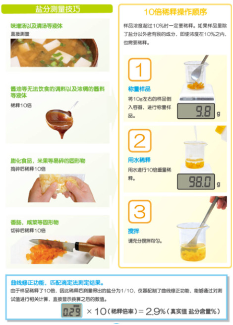 【使用技巧】(測量含鹽量較高的樣品時需要做樣品稀釋。)