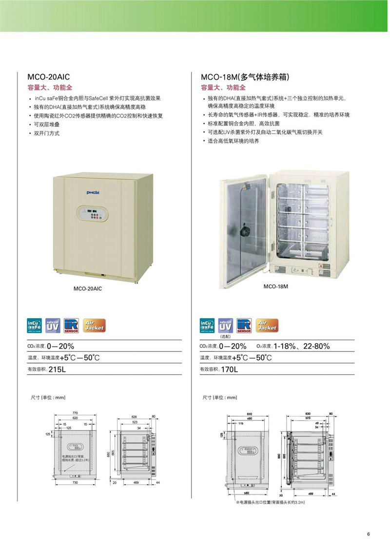 PHcbi專業(yè)級二氧化碳/多氣體型培養(yǎng)箱MCO-18AC 精確、可靠 氣套式; ·inCu saFe銅合金內(nèi)膽與SafeCell紫外燈實現(xiàn)高抗菌效果。 DHA(直接加熱氣套式)系統(tǒng)確保高精度高穩(wěn)定的溫度環(huán)境; ·自動標(biāo)定; ·可雙層堆疊; ·雙開門方式;