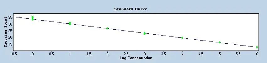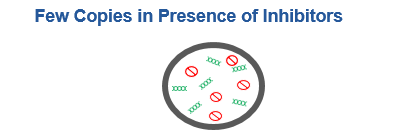 基于泊松分布將核酸樣本分散到大量微孔或者液滴中(如圖1),相較于qPCR而言,dPCR無需標(biāo)準(zhǔn)曲線(如圖2),抑制成分被有效稀釋(如圖3),讀取結(jié)果方式具備更精確結(jié)果的潛力。盡管有諸多優(yōu)勢,我們?nèi)孕柚匾昫PCR的操作過程、試劑耗材穩(wěn)定性及硬件性能帶來的影響;同時(shí)需針對性的完善實(shí)驗(yàn)細(xì)節(jié),從而盡可能減少引入的偏差,獲得高靈敏度、高穩(wěn)定性的實(shí)驗(yàn)結(jié)果。