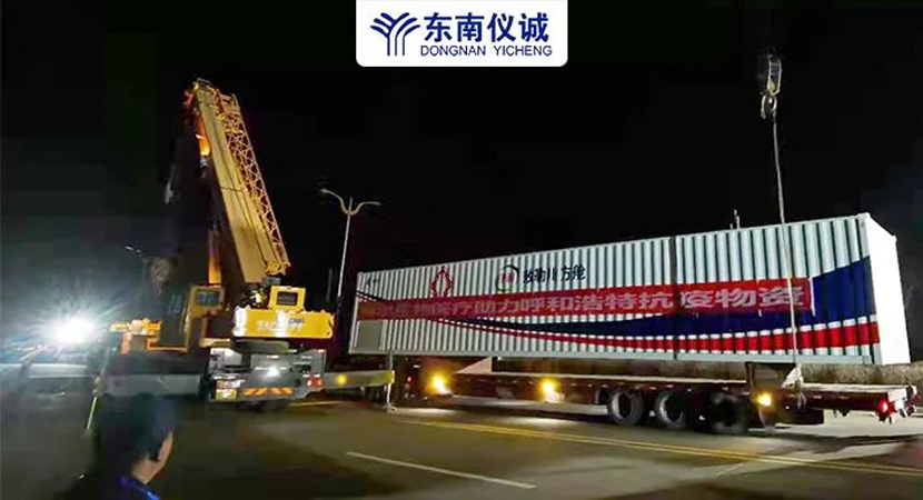 2月末內(nèi)蒙古呼和浩特市爆發(fā)疫情,伊利集團急采移動PCR方艙實驗室助力抗疫,要求48小時內(nèi)投入使用,東南儀誠不辱使命,圓滿完成任務(wù)。由北京東南儀誠供貨的第一批伊利方艙于2月28日落地,第二批敕勒川方艙于3月8日投入使用,經(jīng)過數(shù)日的奔波,第三批伊利方艙也于4月初按時交付。