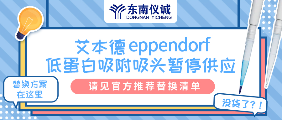 近日,東南儀誠收到艾本德(eppendorf)公司通知,低蛋白吸附吸頭(包扣低蛋白吸附濾芯吸頭)暫停供應(yīng),如有急需,艾本德公司推薦相應(yīng)替換產(chǎn)品,各位實驗室使用者、經(jīng)銷商快來看看吧。